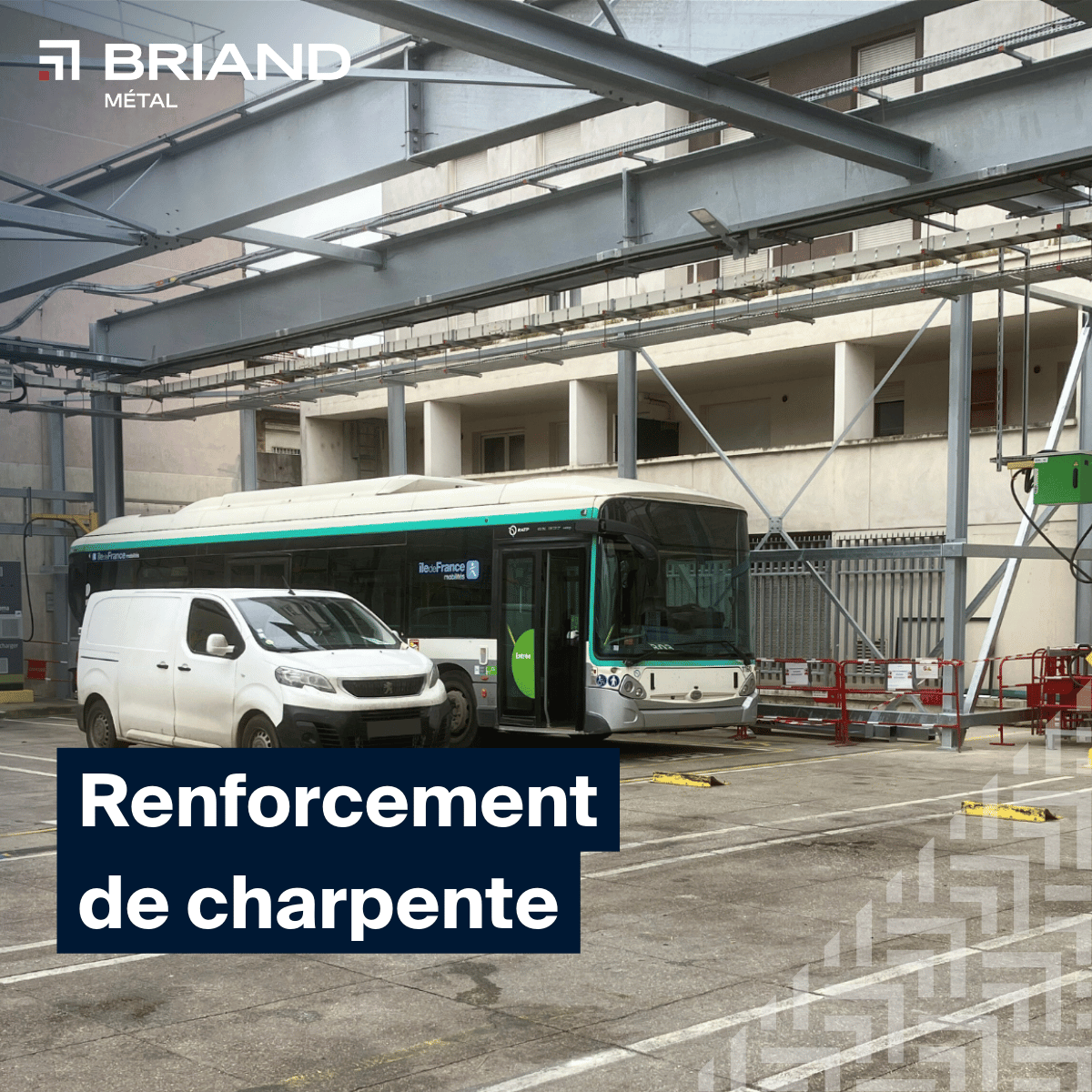 - Objectif : accueillir les bus électriques, ajouter des bornes de recharge, des sprinklers, des luminaires et donc renforcer la charpente existante.